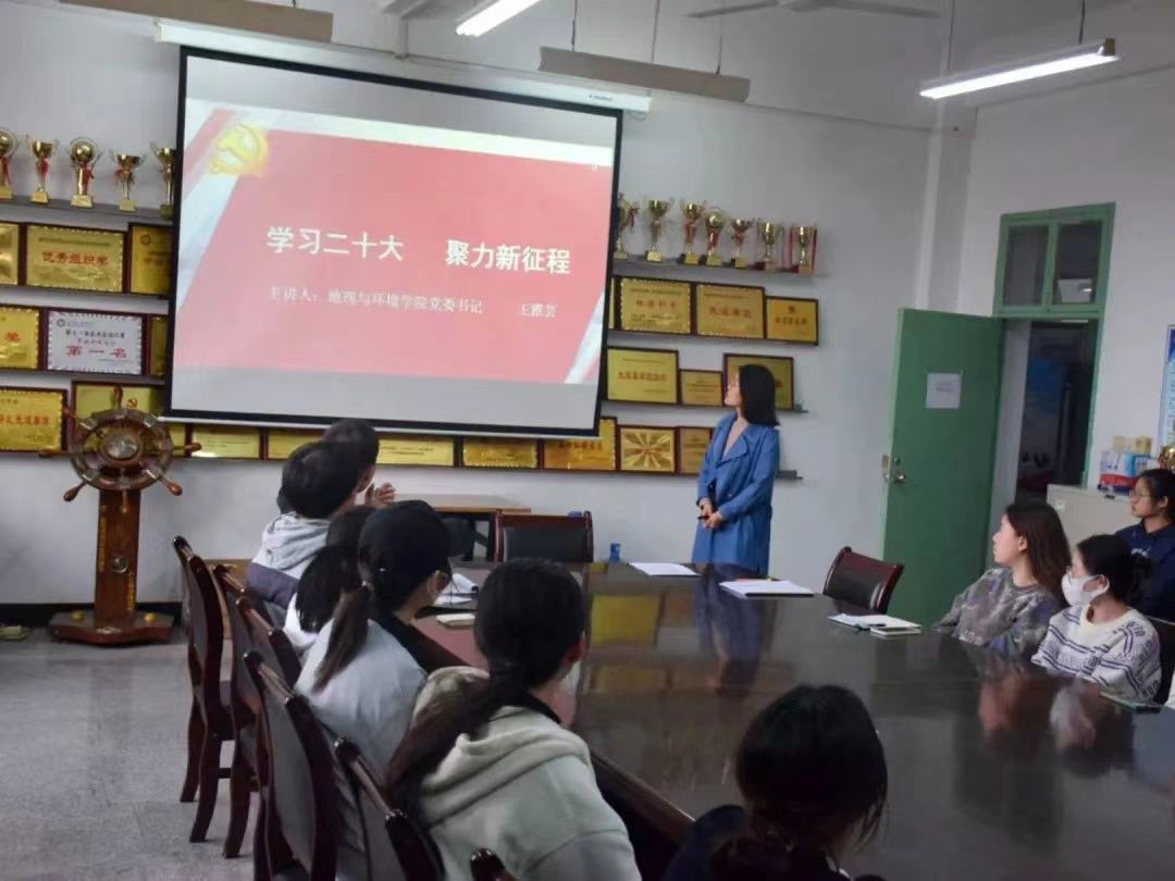 宣讲会中王雅芸以“学习二十大,聚力新征程”为题,从党的二十大会议召开的意义、大会报告内容和主题引入,介绍了学习党的二十大精神对青年的重要意义。通过地环院优秀青年代表的事迹阐述了当代青年要做“善拼搏、敢奋斗、有奉献”的新青年。围绕“为什么学,怎么学,怎么做”,她表示学习党的二十大精神是当前和今后一个时期首要的政治任务。青年作为国家前进的支柱力量,正处于新时代的舞台,应补足精神之钙,心怀鸿鹄之志。她希望同学们全面学习、把握和落实党的二十大精神,做到学用结合、踔厉奋发。呼吁同学们要牢记习近平总书记对青年人的谆谆教诲,要坚定新时代中国青年的理想信念,培养吃苦耐劳精神和谦虚奋斗意识,兼顾“硬实力”和“软实力”,增长才干、练就本领,以实际行动谱写新时代青年担当使命的新篇章。