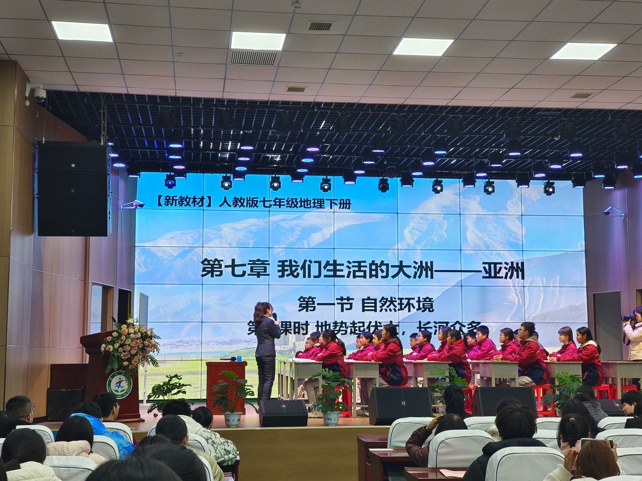 见习活动在一节精彩的地理公开课中拉开帷幕,由葛盛男老师讲授七年级下册第七章第一节 “我们生活的大洲 —— 亚洲”。课堂上,葛老师巧妙地播放亚洲自然风光视频导入新课,瞬间吸引了员工们的目光。随后,她通过展示地形图等多样化的教学手段,引导员工自主探究亚洲的地形与河流特征,以问题驱动教学,在课堂中融入区域认知、综合思维等核心素养的培养。员工们热情高涨,积极参与课堂互动,课堂气氛十分活跃。