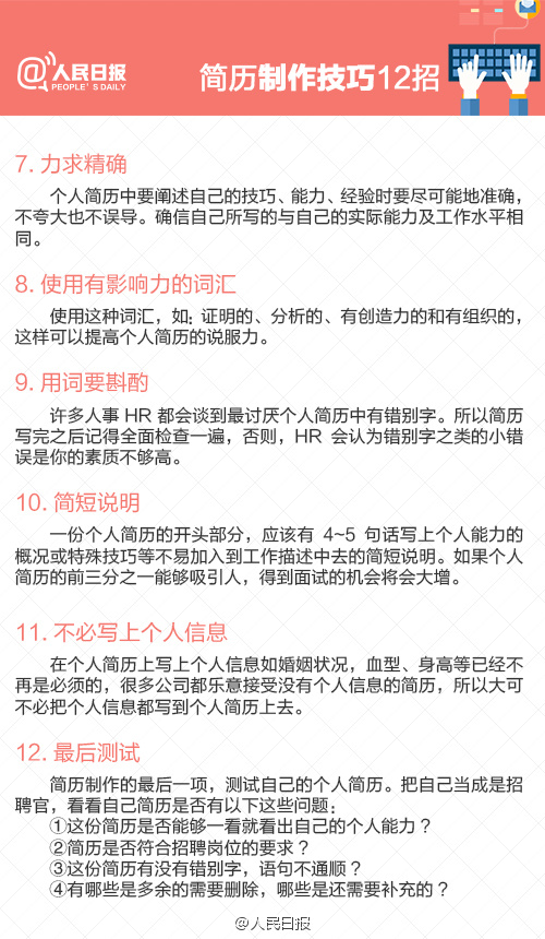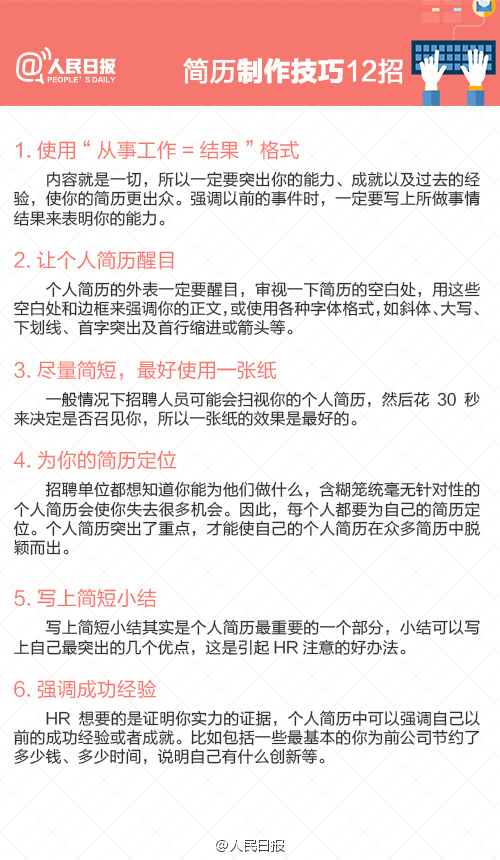 每年的9月,招聘会、面试、企业宣讲会...就业季开启。求职过程中,简历无处不在。优秀的简历能让HR一眼看中!但你知道打造优秀简历的技巧吗?还在为简历经常石沉大海、没有回应而烦恼吗?戳图↓↓实用简历制作技巧12招 纸质版简历格式,让你的简历亮闪闪!