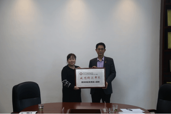 人员规模以及所取得的众多服务成果。随后,毛董事长介绍了公司的发展历程、办学规模、团队队伍、教学科研和专业建设等情况。最后,双方就协同育人达成合作协议,并进行了基地授牌仪式。