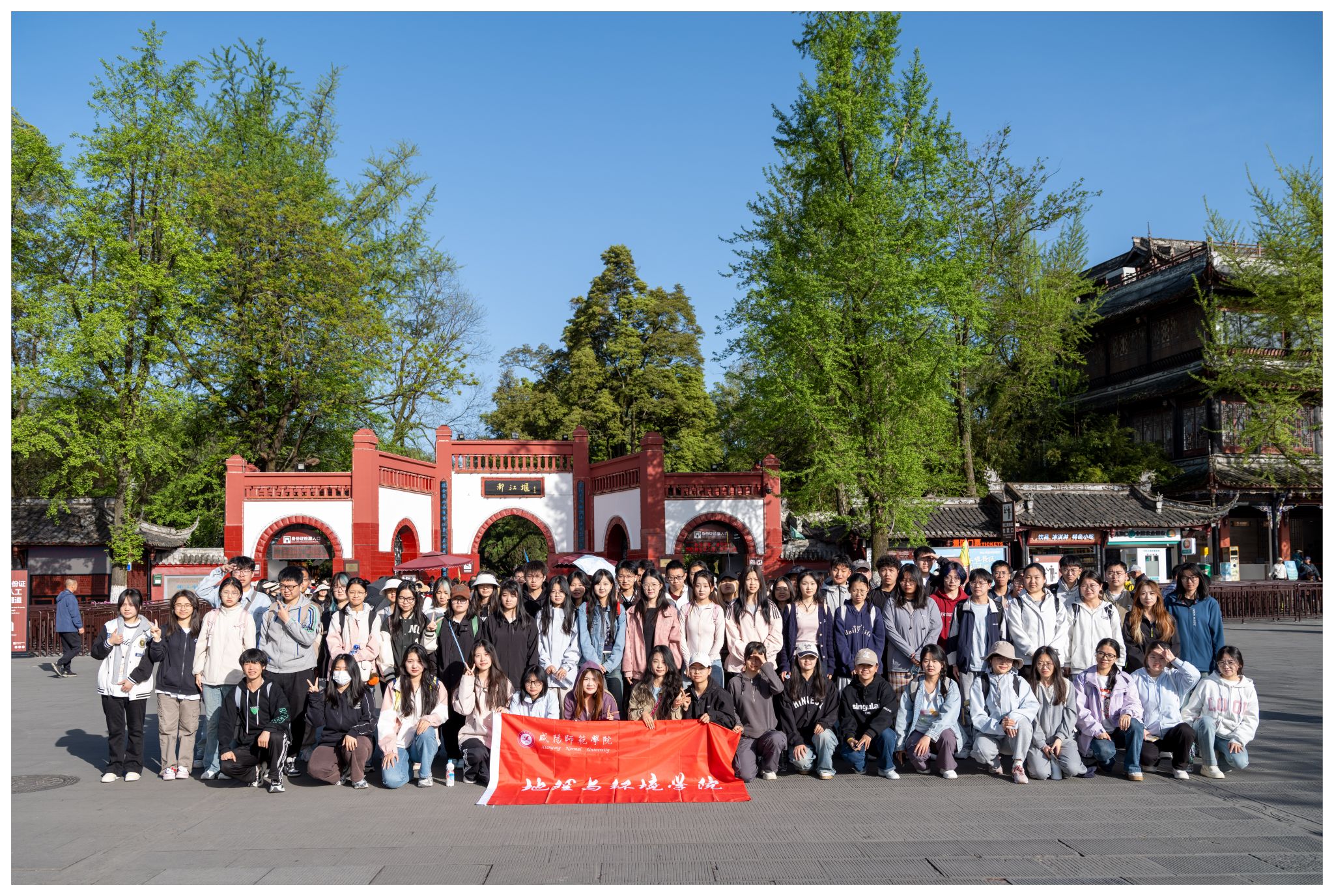 在都江堰实习点,带队教师给员工讲述了都江堰水利工程修建的自然与时代背景、和自然条件,带领员工领略了都江堰水利工程的组成,讲述了各部分的功能、水利工程原理和意义,见证了古人治水的智慧,让员工不仅学习专业知识,也了解了中国传统文化的博大精深,激发了员工对地理学科的热爱。