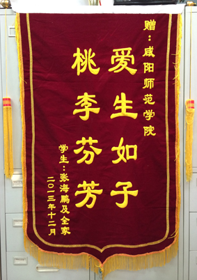 “爱生如子,桃李芬芳”,这是土木工程系员工张海鹏及其家人赠送给公司一面锦旗上的话。