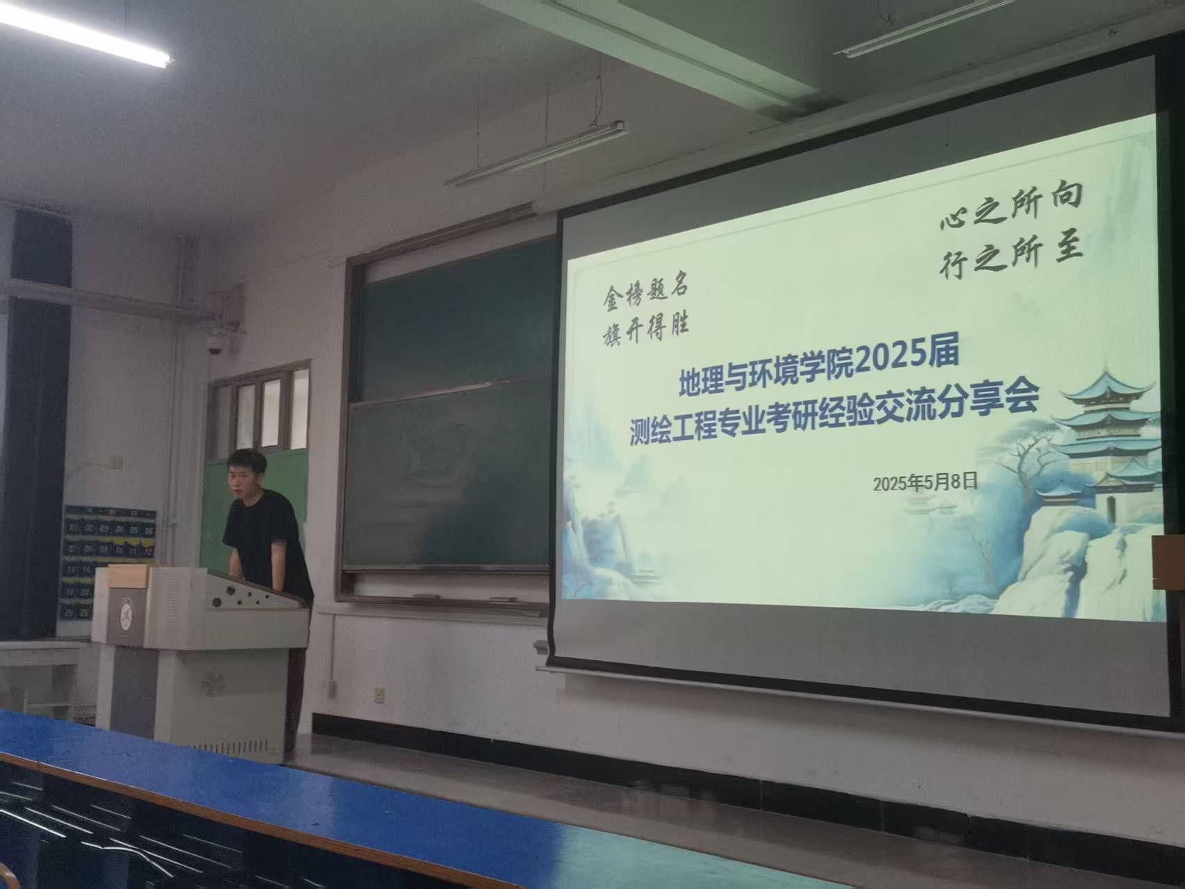 为帮助测绘工程专业员工更好地规划考研备考、掌握复习技巧、了解面试、调剂流程,2025年5月8日下午,测绘工程系在1-725召开考研经验交流分享,本次分享会邀请了2025届考研成绩优异的熊琳梅、何发舜、冯保翔、文博锐四位同学,面向测绘2023级、2024级的同学们分享他们的考研经验与心得体会。